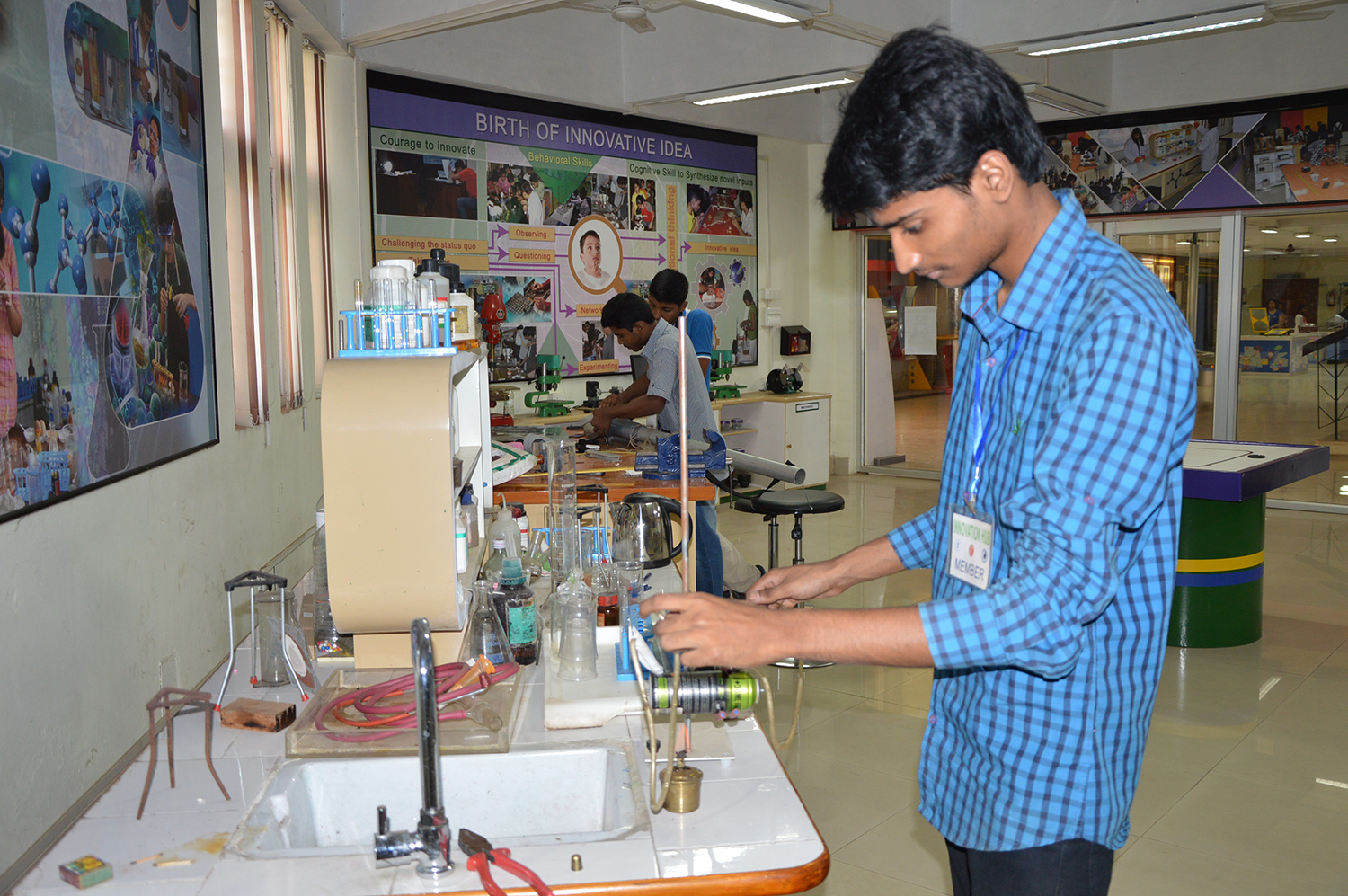 The Innovation Hub provides a platform for the young students to engage in innovative and creative activities. The main idea is to promote creative thinking and problem solving ability through hands on activities and experiments. Membership is available for school and college students for long-term hands-on and minds-on engagement in innovative projects in science & technology.Interested students can get the membership and avail the facilities in the Innovation Hub from 10-30am to 5pm on all working days.